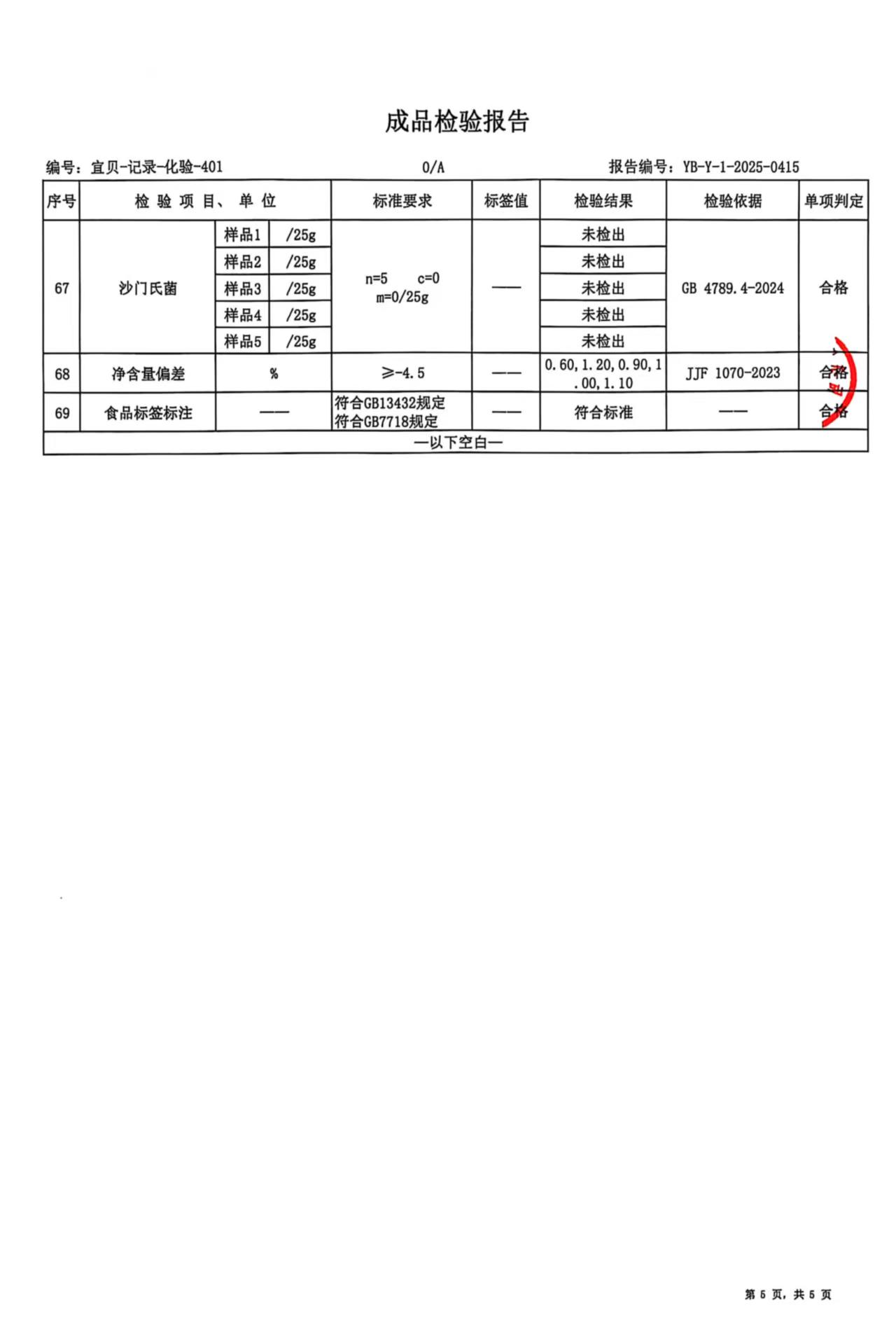1Y50415-100 宜贝儿1段100克