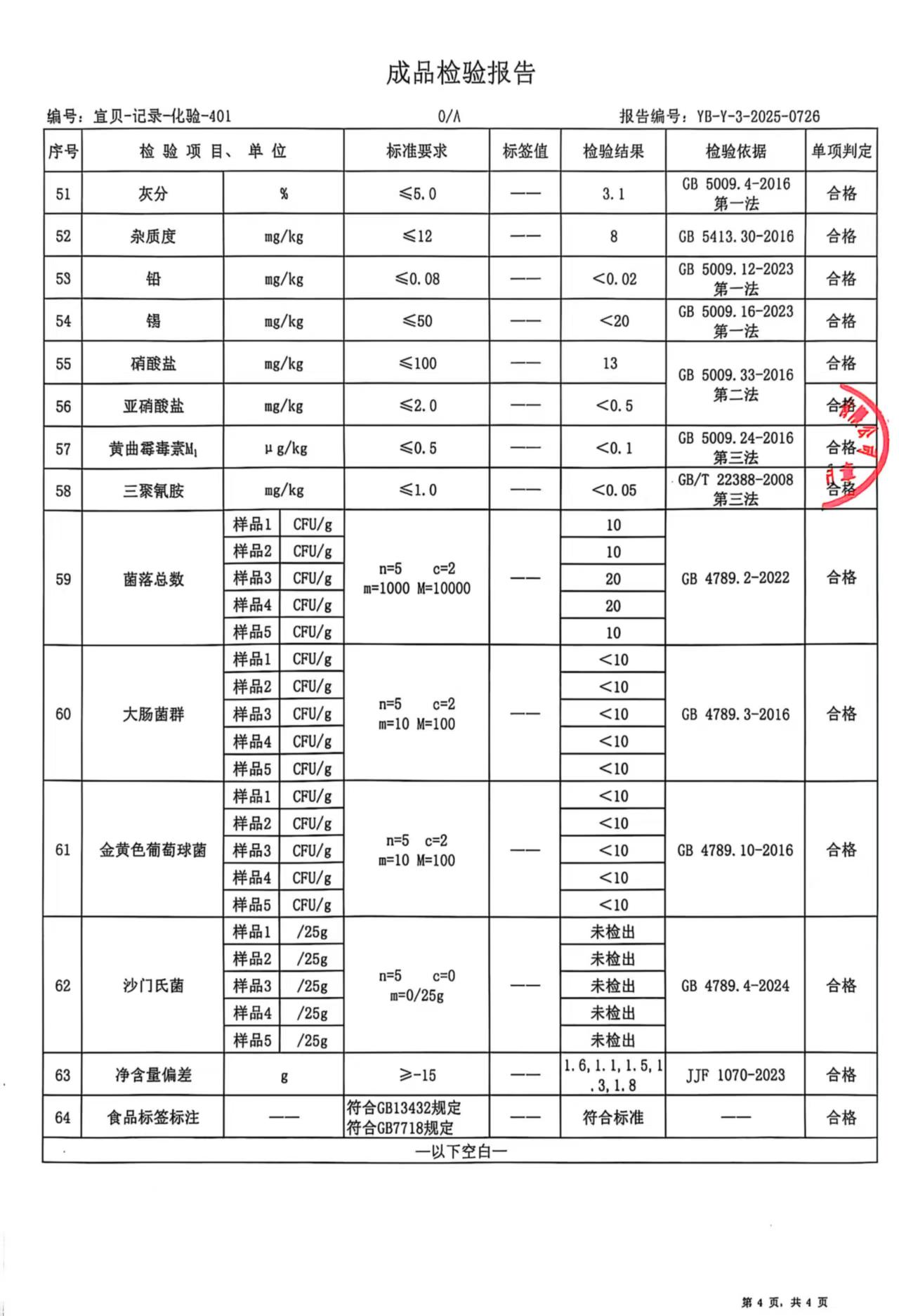 2Y50730-800 宜贝儿2段800克