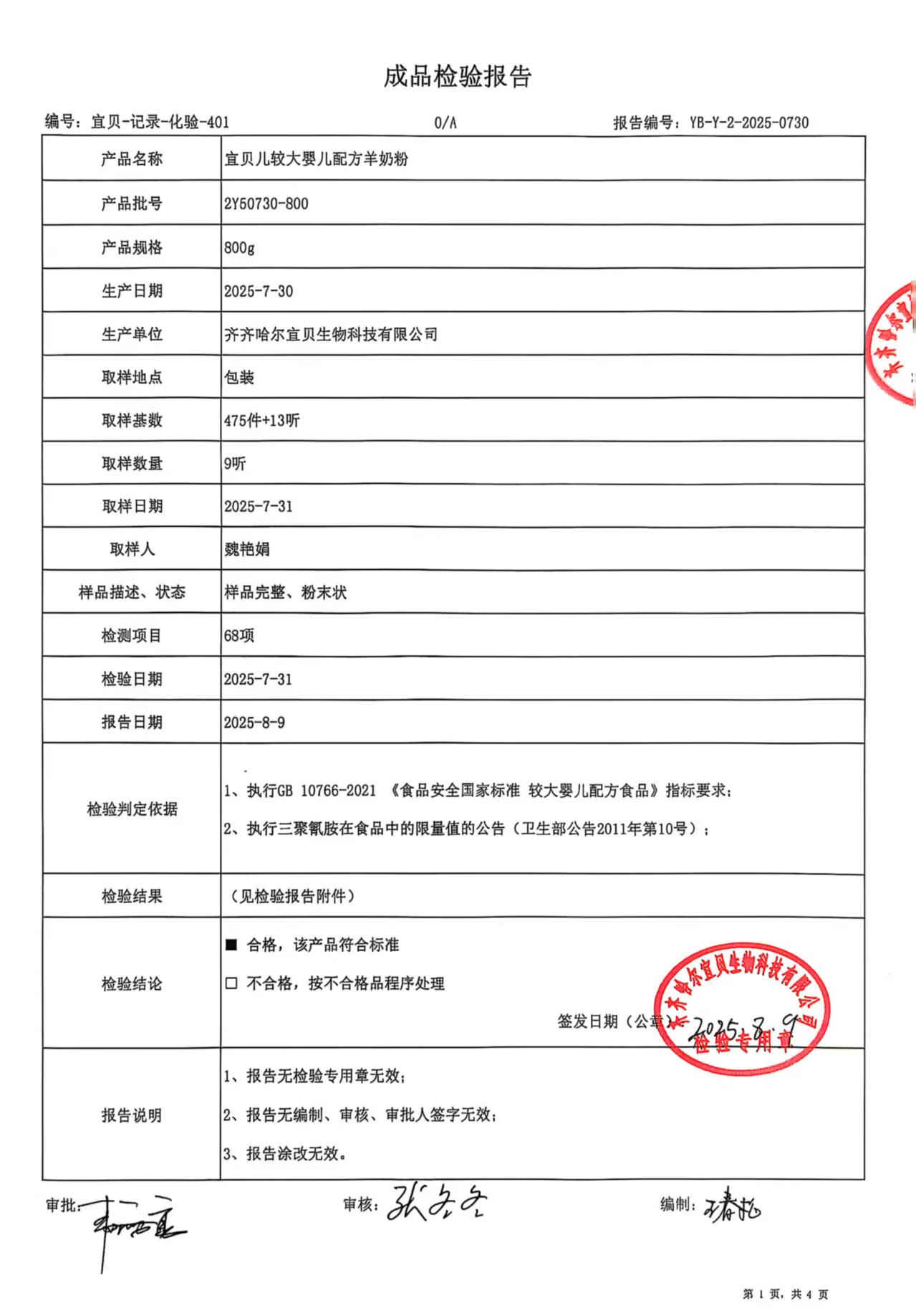 2Y50730-800 宜贝儿2段800克