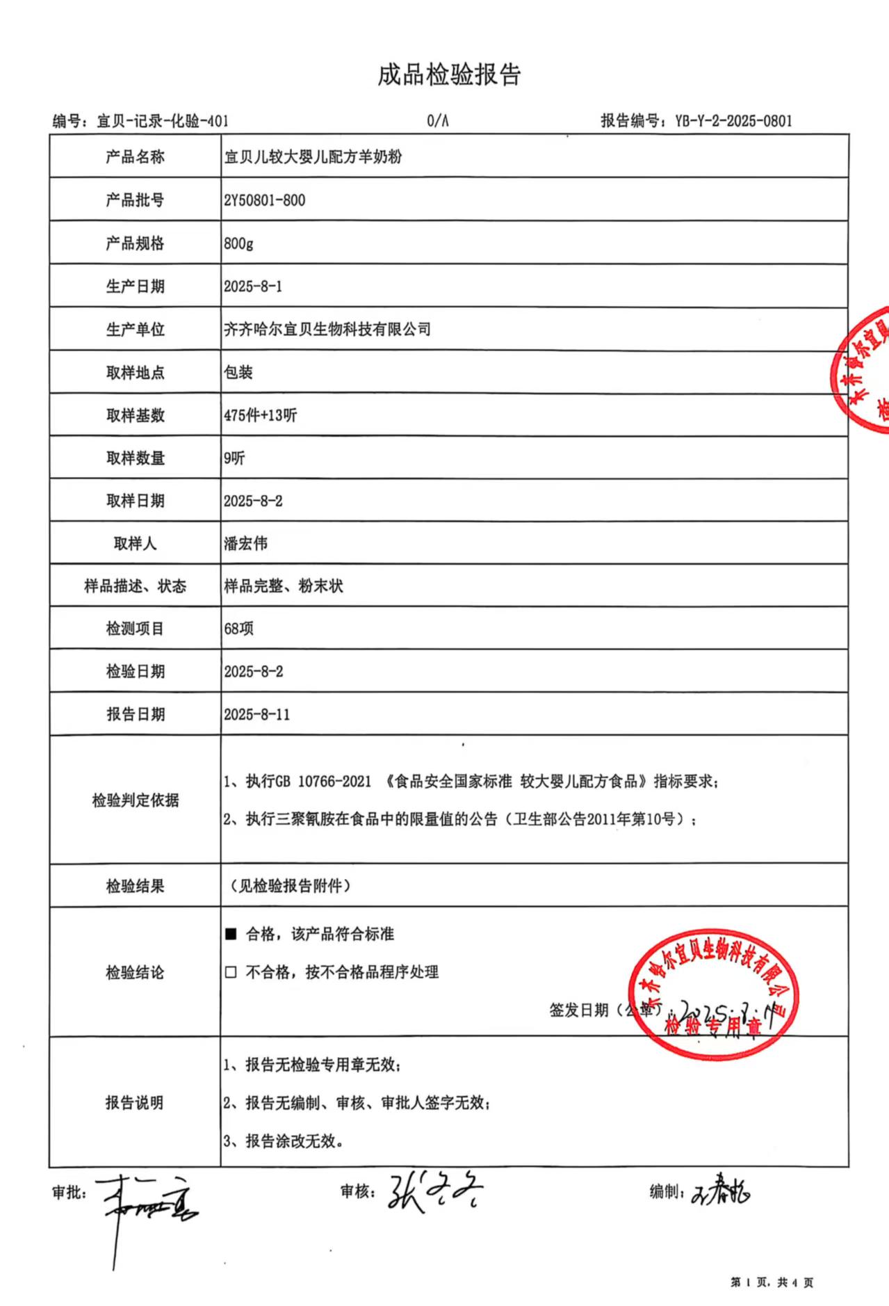2Y50801-800 宜贝儿2段800克