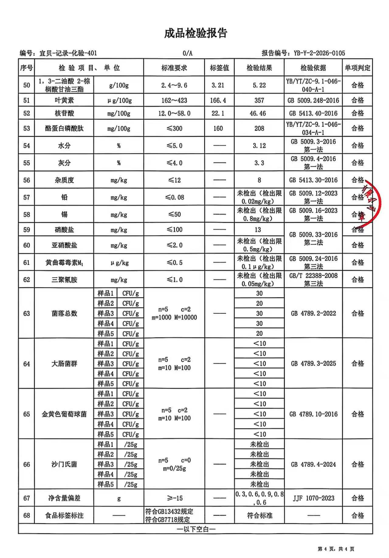2Y60105-800 宜贝儿2段800克