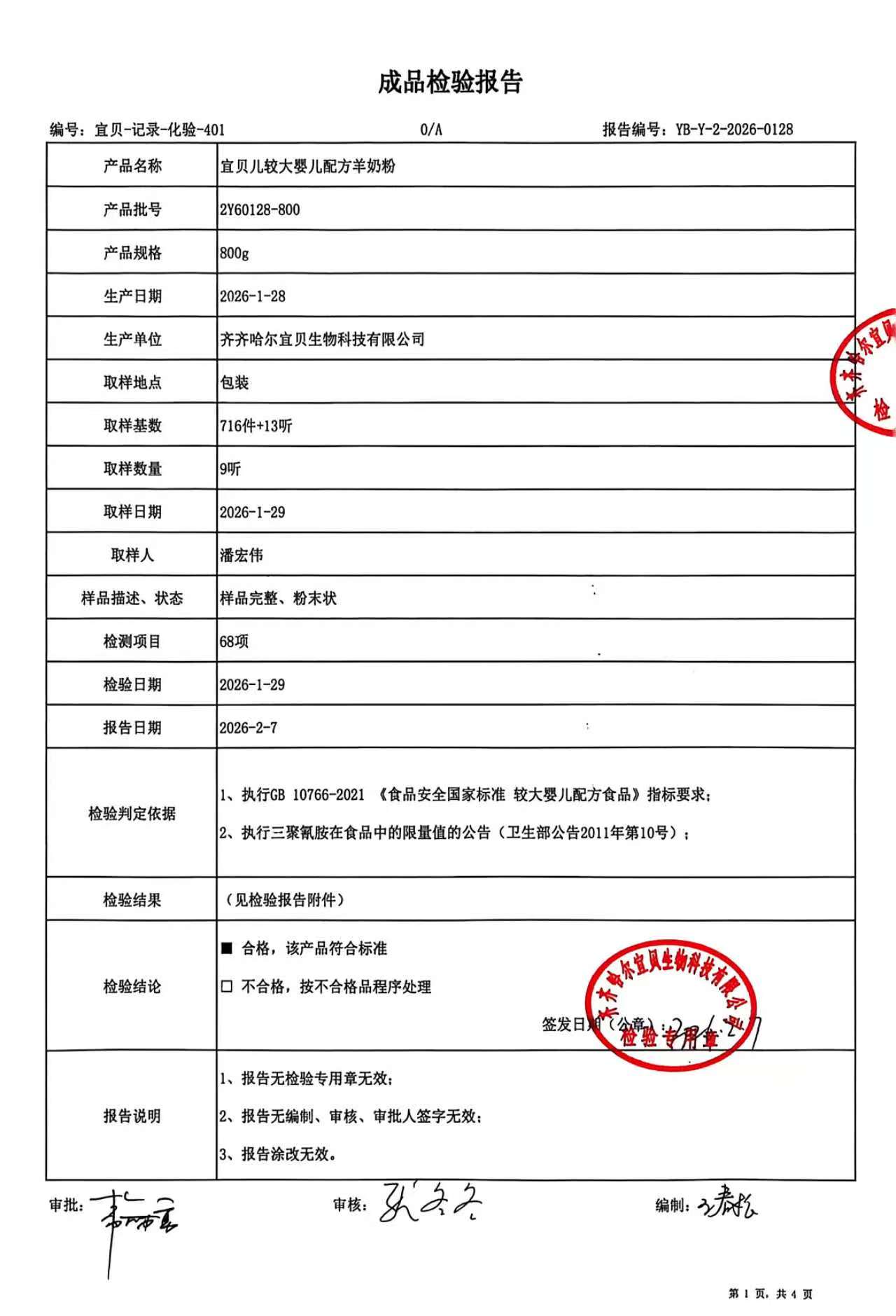 >2Y60128-800宜贝儿较大婴儿配方羊奶粉800g