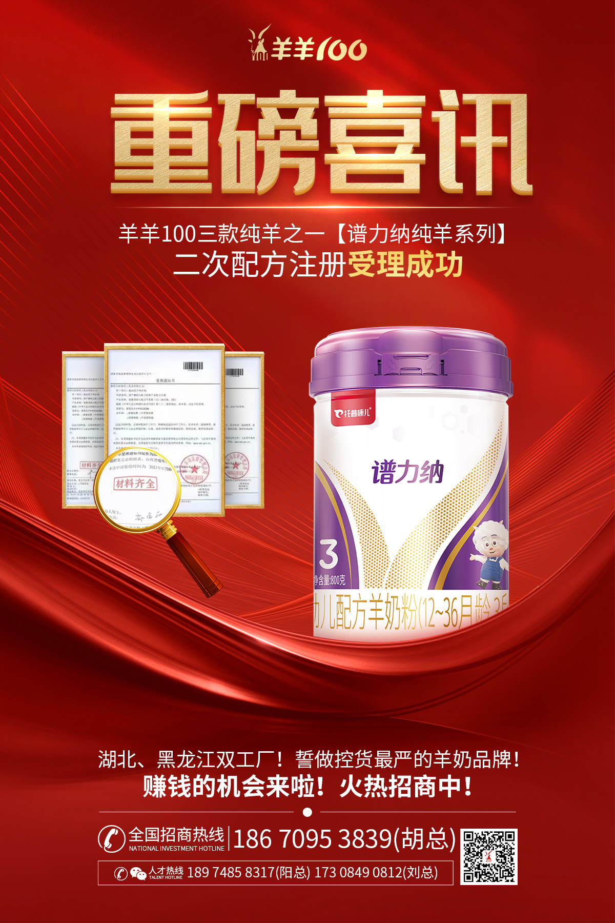 随着新国标的正式公布,羊羊100积极应考,按照新国标要求,升级优化包装设计、升级产品奶源、提高配方品质,为配方注册做好充分准备,使得本次申报顺利被国家主管机关成功受理。