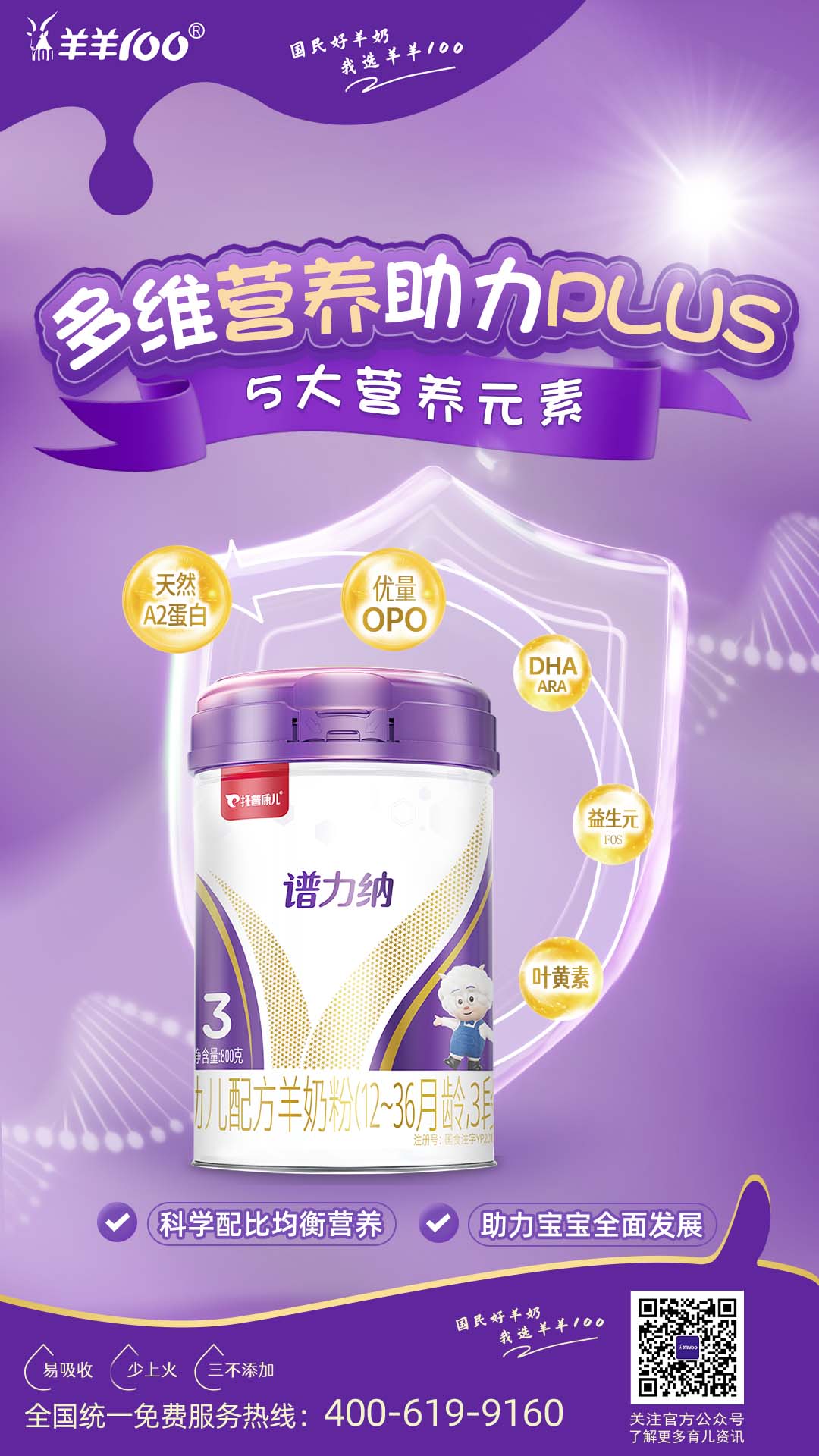谱力纳本次能成功通过注册受理,离不开自身过硬的产品品质。作为羊羊100全新打造的一款纯羊配方羊奶粉,谱力纳采用纯羊乳蛋白,其中致敏性酪蛋白含量比牛乳中含量少85%,在宝宝肠胃中形成的凝块细而软,不易过敏,不易上火。羊乳的脂肪球也比牛乳的小三分之一,更易被人体消化吸收。
