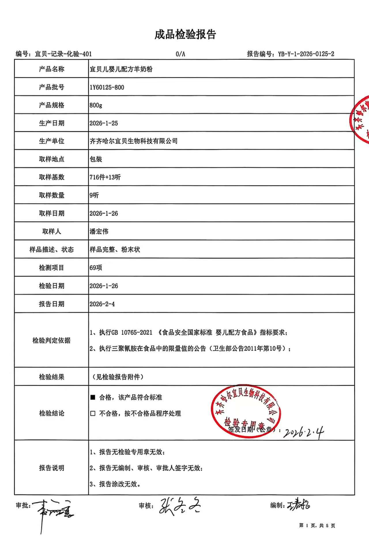 >1Y60125-800宜贝儿婴儿配方羊奶粉800g