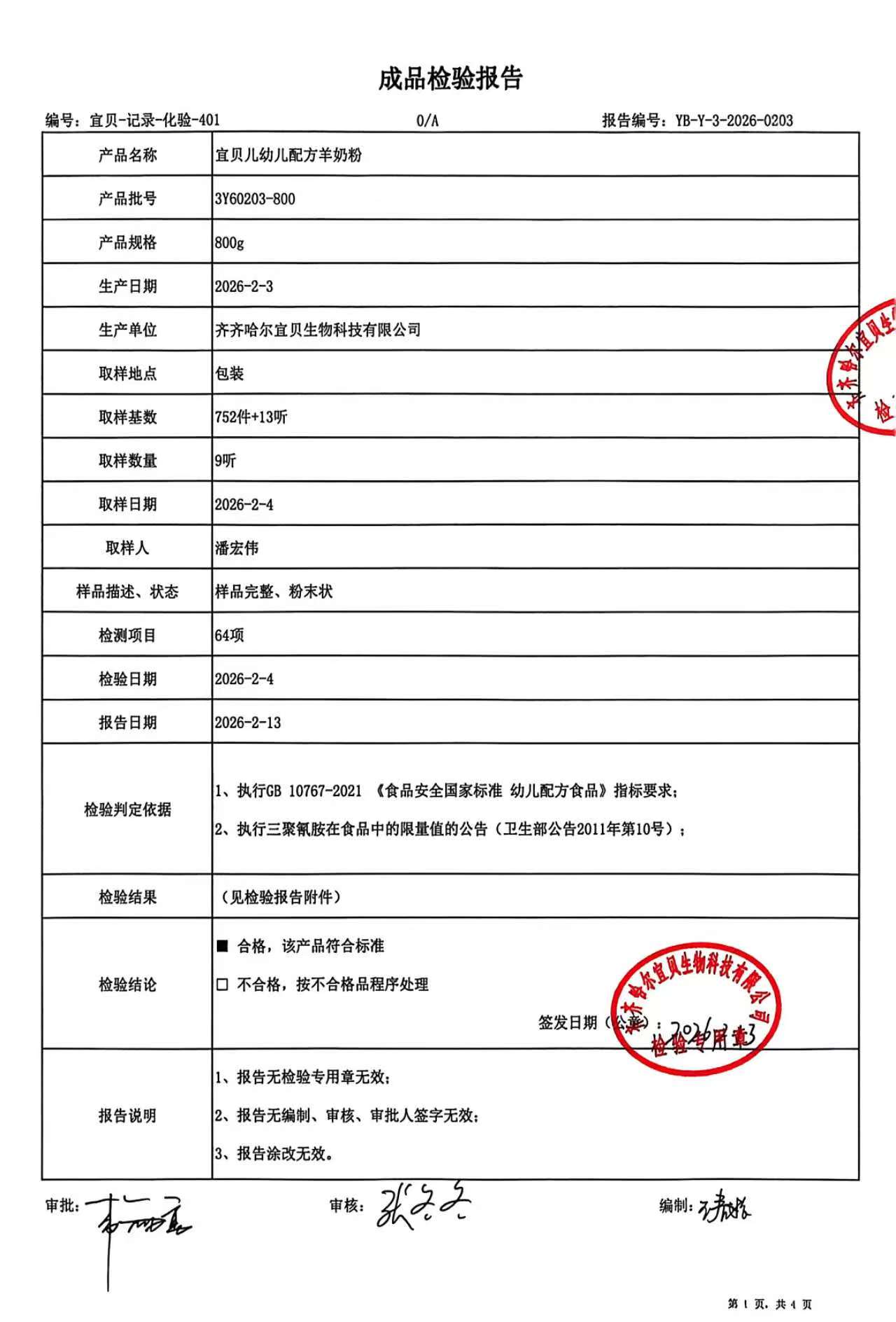 20260125A01羊羊宜贝婴儿配方羊奶粉100g
