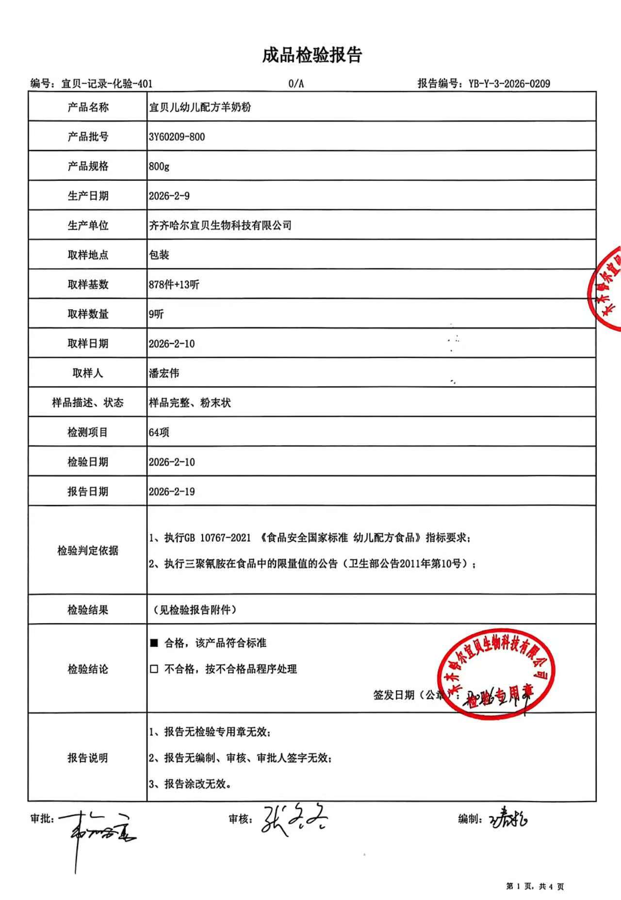>3Y60209-800宜贝儿幼儿配方羊奶粉800g