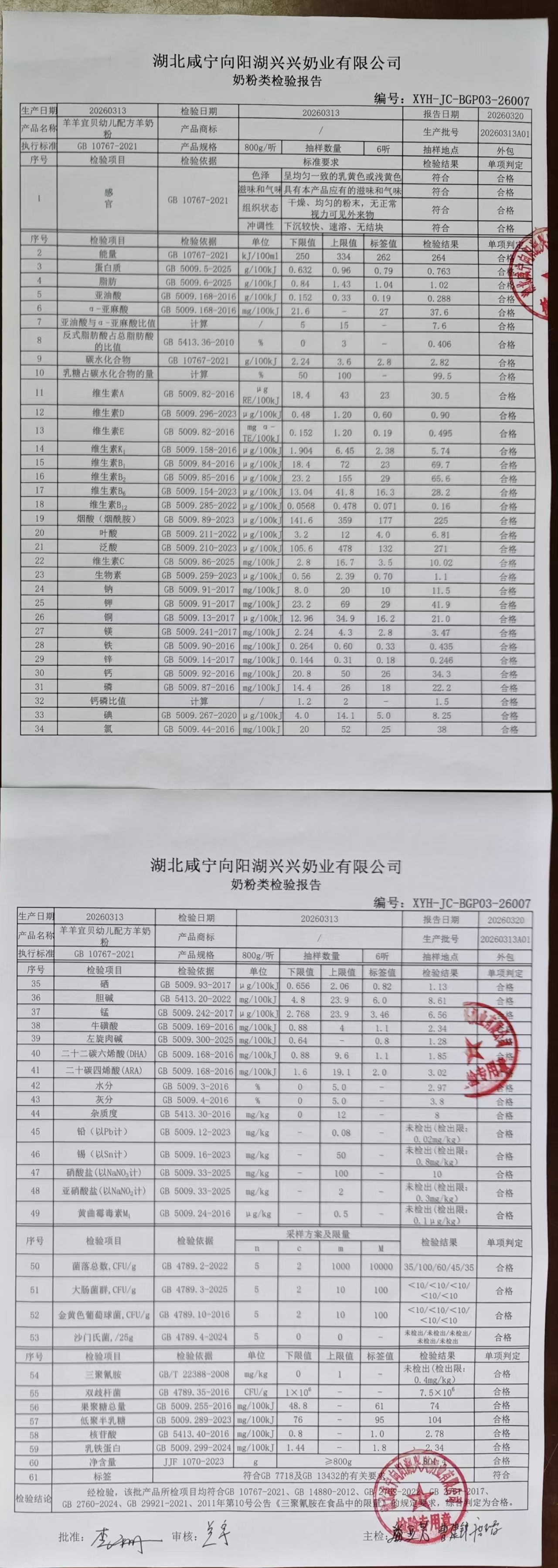 >20260313A01羊羊宜贝幼儿配方羊奶粉800g