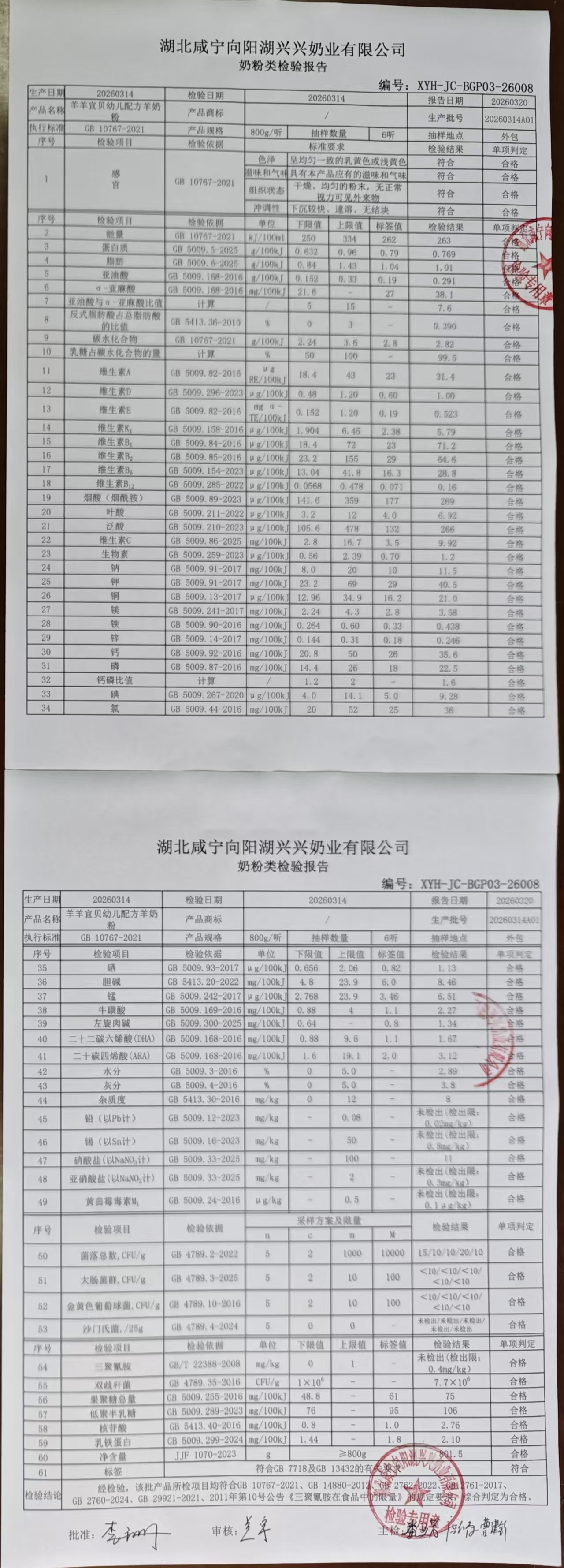 >20260314A01羊羊宜贝幼儿配方羊奶粉800g